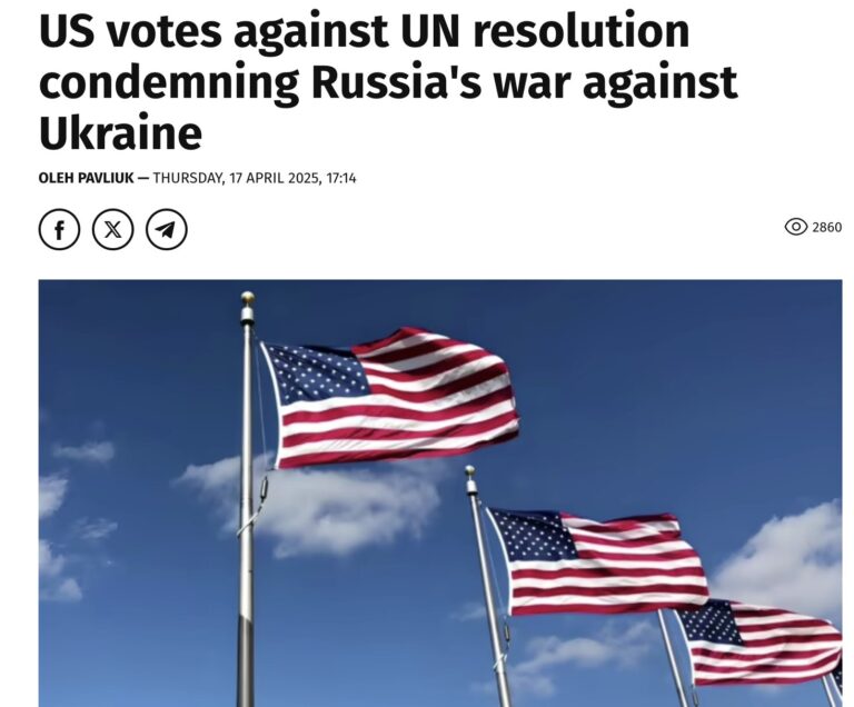 LGT: Lần bỏ phiếu tại Đại hội đồng Liên Hiệp quốc ngày 16-4-2025, phần lên án hành động xâm lược của Nga ở Ukraine, Mỹ đã đứng chung hàng ngũ với các nước độc tài như Nga, Belarus, Bắc Hàn, Nicaragua… để ủng hộ Nga xâm lược Ukraine. Ngay cả Trung Quốc cũng đã bỏ phiếu trắng và Việt Nam bỏ phiếu chống. Có thể nói, nước Mỹ thời Trump trên cả sự khốn nạn!