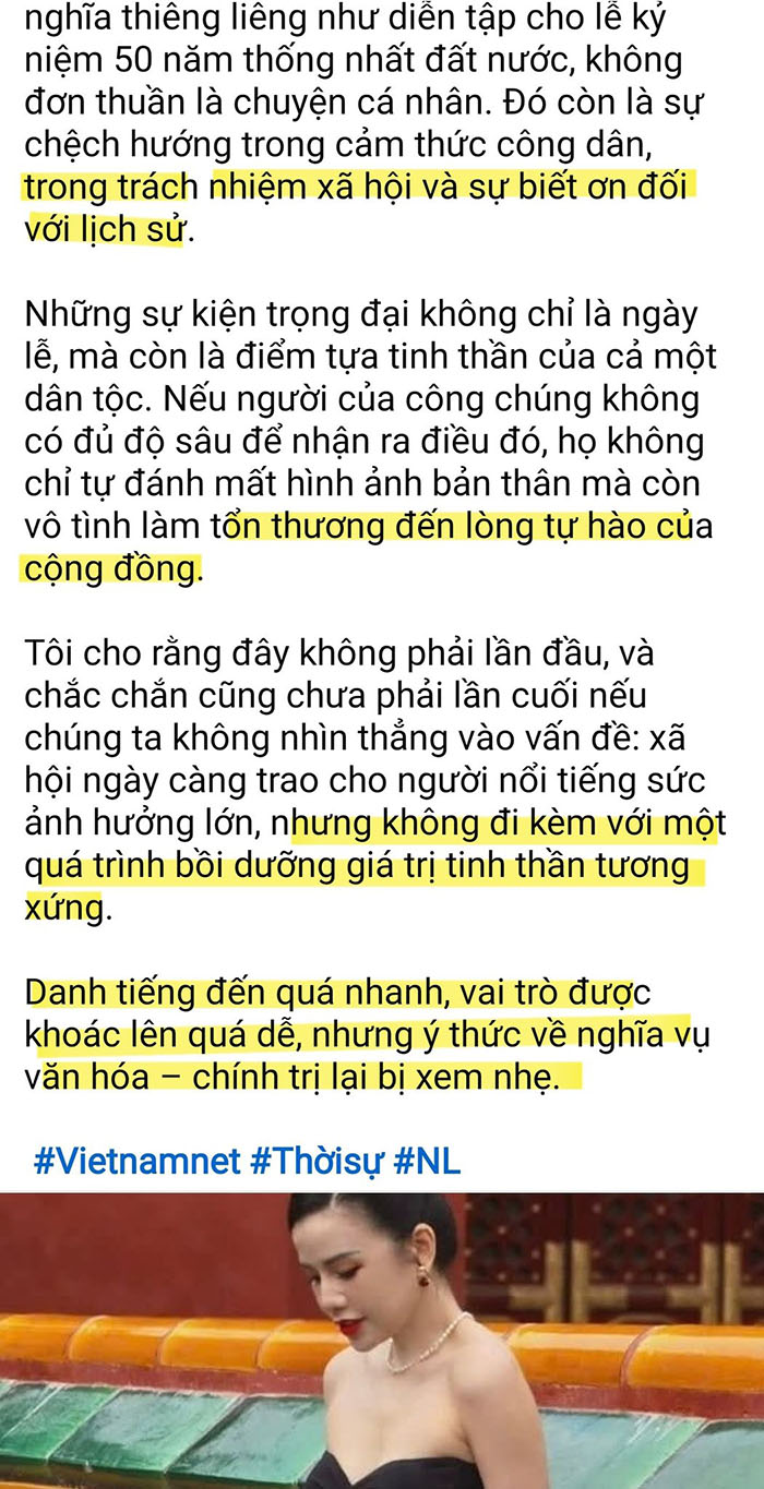 Bạn biết bạn kia là ai mà bảo vô ơn? Giả sử bạn ấy có bố mẹ ông bà quan chức, doanh nhân chế độ cũ, bây giờ mất tất cả, còn đi tù, thì sao lại phải biết ơn? Nên cái câu biết ơn đó là văn mẫu rất vô tri. Nhận vơ công lao với toàn dân? Cả quan chức quốc hội cũng có nhận thức, tư duy lệch lạc thế mà lên báo chém như đúng rồi, như thể ông ta biết quá rõ về bạn MC kia. Biết ơn với lịch sử nghĩa là gì vậy?