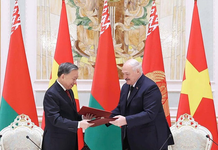 Trong khuôn khổ chuyến thăm cấp nhà nước Cộng hòa Belarus, ngày 12/5 theo giờ địa phương, ngay sau hội đàm, Tổng Bí thư Tô Lâm và Tổng thống Aleksandr Lukashenko đã chứng kiến lễ trao các văn kiện hợp tác giữa Việt Nam – Belarus.