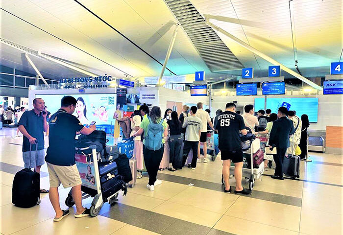 Do hai con không khỏe, nữ du khách đề nghị được làm thủ tục cùng chồng để bế các con, nhưng yêu cầu không được chấp nhận và gia đình được yêu cầu đứng sang một bên.