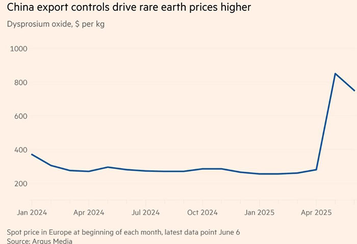 Đòn hạn chế mới nhất tập trung vào các nguyên tố đất hiếm “nặng” ít phổ biến hơn như dysprosi, vốn không có nhà sản xuất đối thủ lớn nào bên ngoài Trung Quốc và giá của chúng tăng vọt sau khi các biện pháp kiểm soát được công bố. Kể từ những năm 2010, Bắc Kinh đã siết chặt hoạt động sản xuất và buôn lậu đất hiếm tự phát. Sản xuất bởi một số ít công ty do nhà nước kiểm soát chặt chẽ thống trị và các biện pháp kiểm soát mới nhất được áp dụng thông qua cấp phép xuất khẩu “sử dụng kép” đối với các sản phẩm được sử dụng trong sản xuất quốc phòng. Điều này giúp chính quyền Trung Quốc kiểm soát chuỗi cung ứng dễ dàng hơn nhiều.
