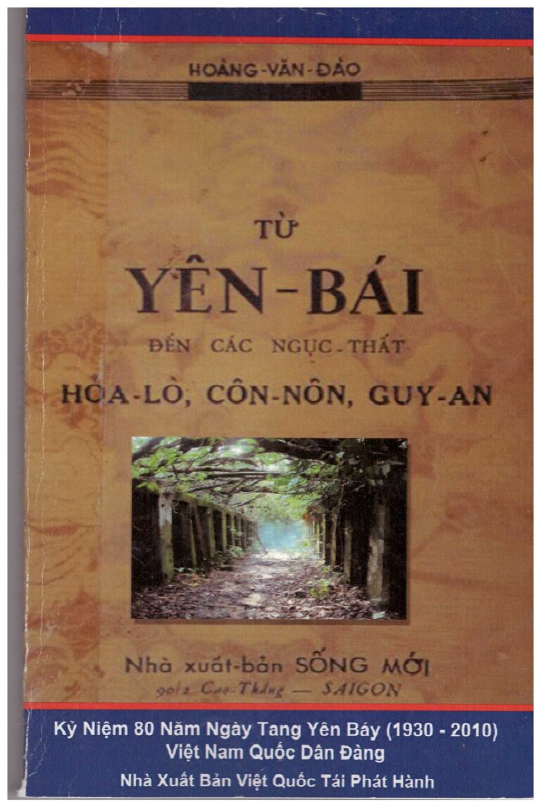 Rồi lão tặng tôi cuốn sách “Từ Yên-Bái Đến Các Ngục Thất Hỏa-Lò, Côn-Nôn, Guy-An” của tác giả Hoàng Văn Đào, xuất bản tháng 10. 1957 tại Sài Gòn. Năm 2010, nhân kỷ niệm 80 năm “Khởi nghĩa Yên Bái”, sách được tái bản ở Mỹ. Nhưng bìa sách dùng ảnh photocopy bìa nguyên bản năm 1957. Thời đó: Yên Bái viết là Yên Báy, Côn-Lôn = Côn-Nôn. Còn Guy-An là xứ Guyane thuộc Pháp [2]. Cuốn sách nhỏ hơn 100 trang, lời kể mộc mạc bằng văn phong hơi cổ của thế hệ trước đã khiến tôi ngạc nhiên về những điều xưa nay chỉ biết lờ mờ.