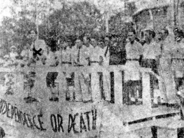 Ông Trần Văn Giàu (X) đọc diễn văn vào ngày 2/9/1945 tại Sài Gòn. Nguồn: Internet