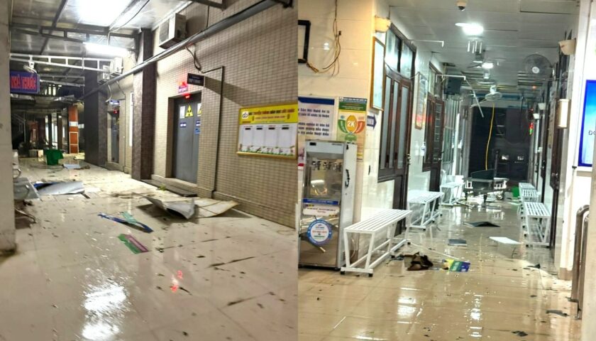 Bệnh viện Sản nhi Nghệ An ngổn ngang khi bão số 5 đổ bộ. (Ảnh dẫn qua Nghệ An/Facebook)