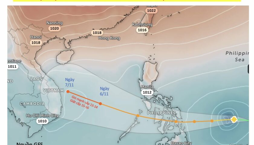 Khoảng 12h trưa 2/11, chuyên gia Nguyễn Lan Oanh, nguyên Phó chủ tịch nhóm Khí tượng hàng không của ICAO khu vực Châu Á – Thái Bình Dương cho biết bão Kalmaegi hiện ở phía đông Philippines, dự kiến ngày 5/11 sẽ vào Biển Đông, trở thành bão số 13 của Việt Nam trong năm nay.