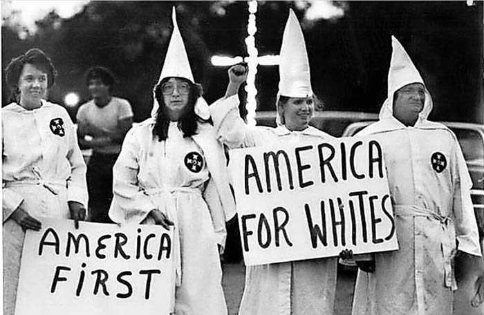 Cụm từ “Nước Mỹ Trên Hết” không phải do Trump sáng chế mà bắt nguồn từ Chủ Nghĩa Dân Tộc Bản Địa vào những năm 1850. Tổng thống Woodrow Wilson sử dụng cụm từ “Nước Mỹ Trên Hết” vào năm 1915 để thúc đẩy chính sách trung lập khi bắt đầu Thế Chiến Thứ Nhất. Tổ chức Ku Klux Klan (1915–1944) đã sử dụng cụm từ này để thúc đẩy chương trình nghị sự thượng tôn người da trắng, chống người nhập cư và chống đạo Công Giáo.
