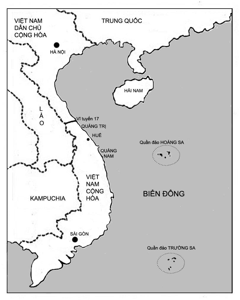 – Hoàng Sa (Paracel Archipelago) là một quần đảo gồm khoảng trên 100 đảo nhỏ, giữa kinh tuyến 111 và 113 độ Đông, và khoảng vĩ tuyến 15 đến 17 độ Bắc, tức phía nam vĩ tuyến 17 độ Bắc, trong biển Biển Đông, ngoài khơi Việt Nam Cộng Hòa. Quần đảo nầy gồm hai nhóm: nhóm phía tây là Nguyệt Thiềm (hay Trăng Khuyết, tiếng Anh là Crescent group) và nhóm phía đông bắc là An Vĩnh (Amphitrite group).