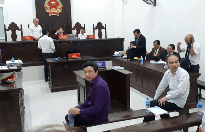 Các bị cáo tại phiên xử vụ án “quỹ đen” tại Cục Đường thuỷ nội địa thuộc Bộ GTVT, ảnh chụp hôm 19/10/2019 ở Hà Nội. Hình: PLO