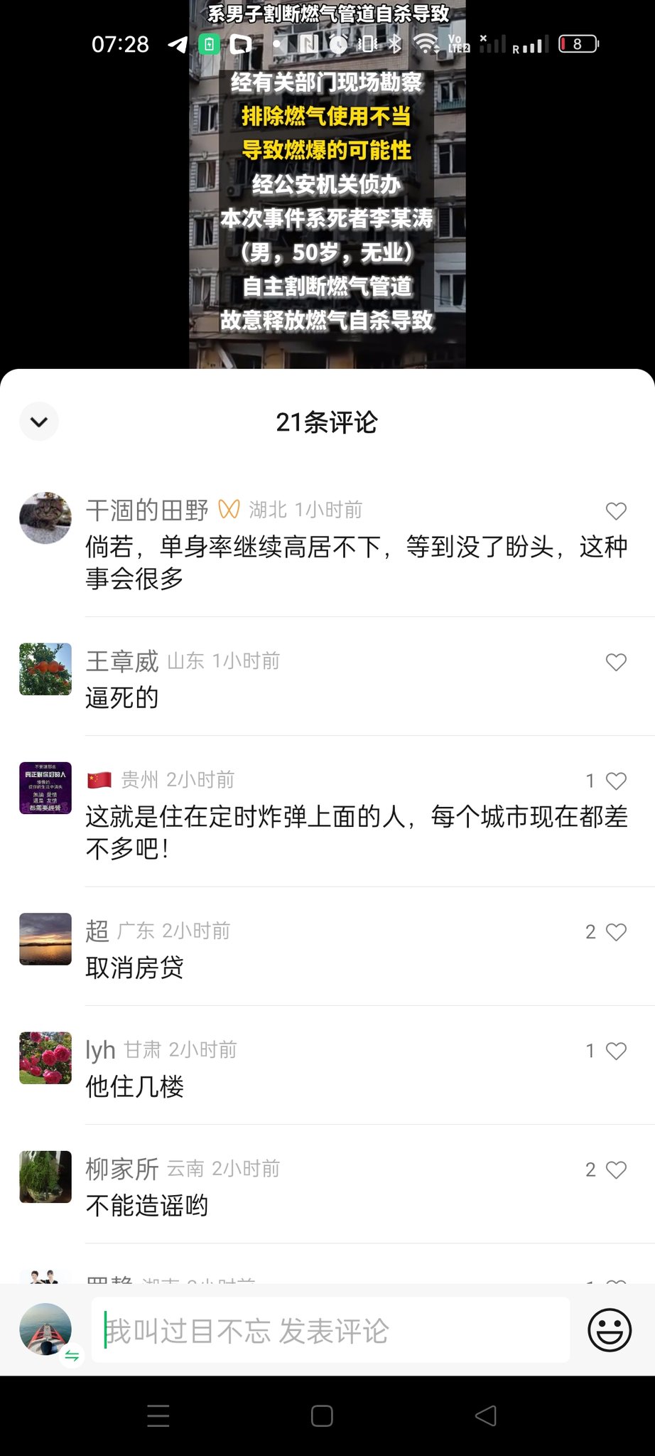 Cư dân mạng cho rằng, do người quá cố thất nghiệp không tìm được việc làm nên đã tuyệt vọng tự tử, muốn trả thù xã hội nên đã cắt ống dẫn gas nổ tung tòa nhà.