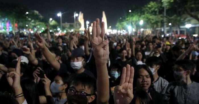 Vũ Dương Làn sóng biểu tình ở Thái Lan yêu cầu cải cách dân chủ trong nước vẫn tiếp tục leo thang. Hôm qua (14/11), hàng nghìn người một lần nữa tập trung biểu tình thủ đô Bangkok, Thái Lan. Nhóm sinh viên thậm chí còn quấn tấm màn trắng với các khẩu hiệu kêu gọi cải cách quanh Tượng…