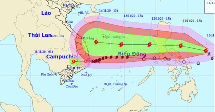 Tâm Tuệ Trong 3 giờ qua, bão Vamco tiếp tục mạnh lên và đang di chuyển nhanh về hướng Biển Đông. Theo Trung tâm Dự báo khí tượng thủy văn Quốc gia, hồi 1h ngày 11/11, vị trí tâm bão ở khoảng 14,5 độ Vĩ Bắc; 125,8 độ Kinh Đông, cách phía Nam đảo Luzon (Philippines) khoảng 480km về phía…